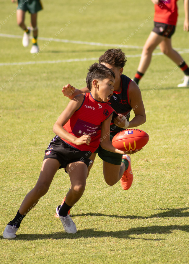 Norwood Red player Shaun Richards is about to be tackled. (476560_09)