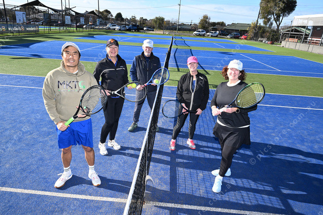 Sunbury Lawn Tennis Club, received grant. Pic of members Dongwood Kang, Vera Kovac Collis, Tom Lain, Jo Durbin and Kim Morris. (Damjan Janevski). 491673_02