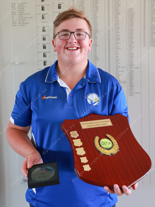 Victor Harbor Tennis Club’s Jack Prosser was awarded the Great Southern Tennis Association’s Junior Excellence Award for 2024/25. (Jesse Ehlers: 467336_04)