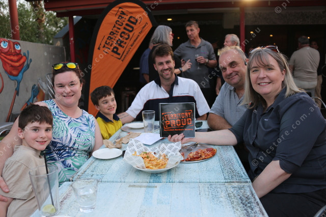 ENGAGING: Chris, Carla, James and Jon Garwood and Hunter and Trudy Murray at the Territory Proud community event. (PIC: GLADYS BARRETA 513107_02)