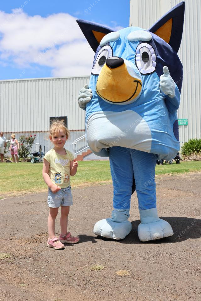 Bluey with a very excited young fan, Pippa McRae from Hamilton.