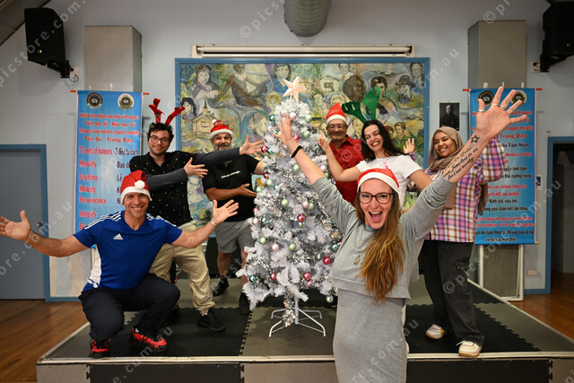 Tin Shed is hosting a Christmas lunch for lonely and disadvantaged people. Pic of manager Tamara Carr (front), with volunteers: hris Karavas, Jeremy Boland, Kyriakos Tsitonakis, TomoJ Rupa, Nikol Stoyanova and Sumaiyaa Aklon. (Damjan Janevski). 521023_05