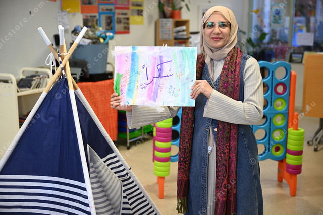 Pic of Zara Al-Hasany runs the Arabic playgroup at Thomastown Neighbourhood House and is receiving a SCULLIN Volunteer award. Photo by Damjan Janevski. 486363_04