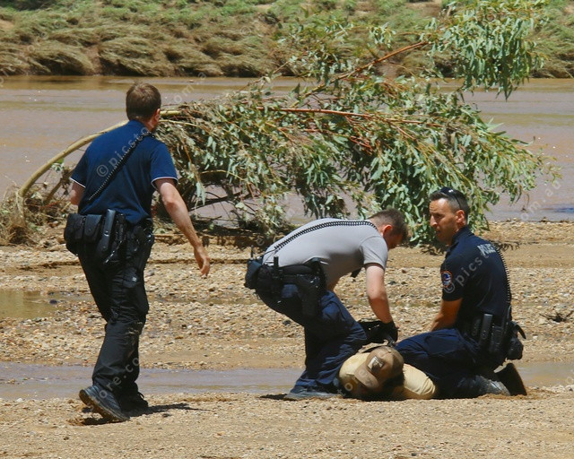 MOVE IN: Additional police move in to arrest a man after he tried to flee following a suspected machete attack. (PIC: PHIL WILLIAMS 534627_02)