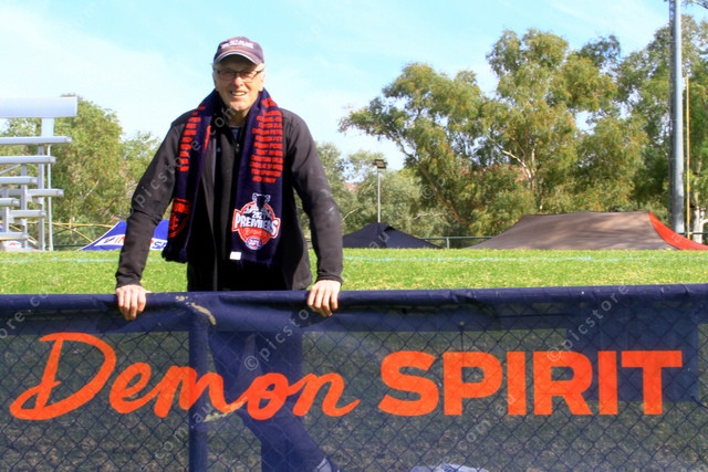 30 HOURS; Tony Duggan flew 30 hours from Toronto in Canada to watch his beloved Demons take on St Kiilda. (PIC: PHIL WILLIAMS 481565_01)