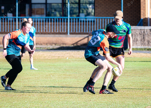 Jared Goldsworthy sets the ball down for his Razzmatazz teammate Jorja Roll. 459630_15