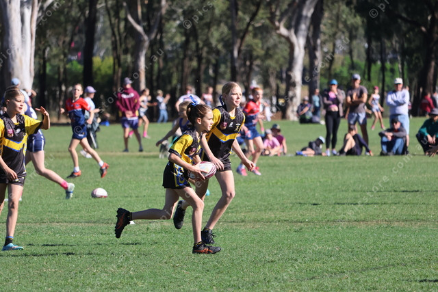 Gladstone’s Porcia Bailey runs the footy up.