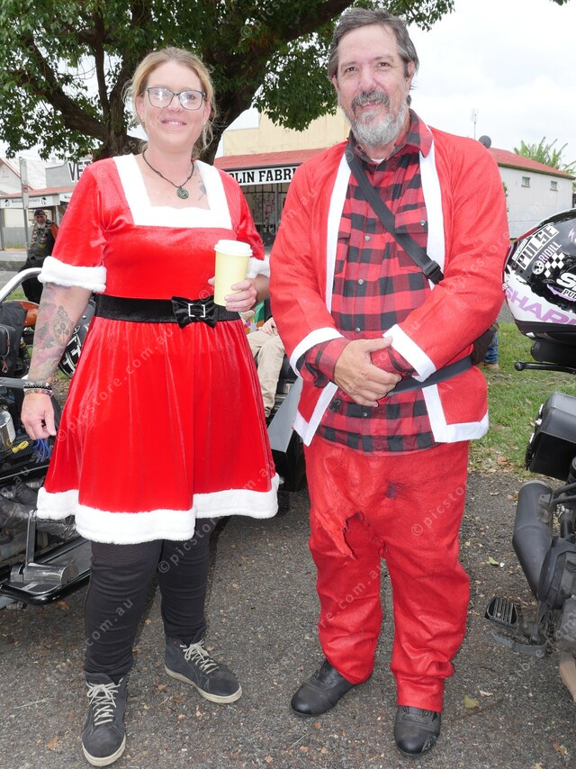 In the spirit of Christmas was Amy Woodhouse from Tin Can Bay Graveyard Riders Cooloola Cove and Michael Dower from Kingaroy who is part of the same group. 519760_02