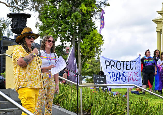 Jo Bangles addresses the protesters (Ivan Kemp) 458239_01