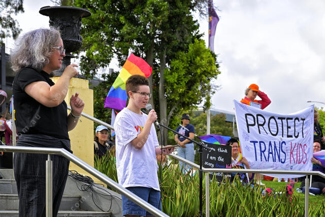 Parker addresses the protesters (Ivan Kemp) 458239_05