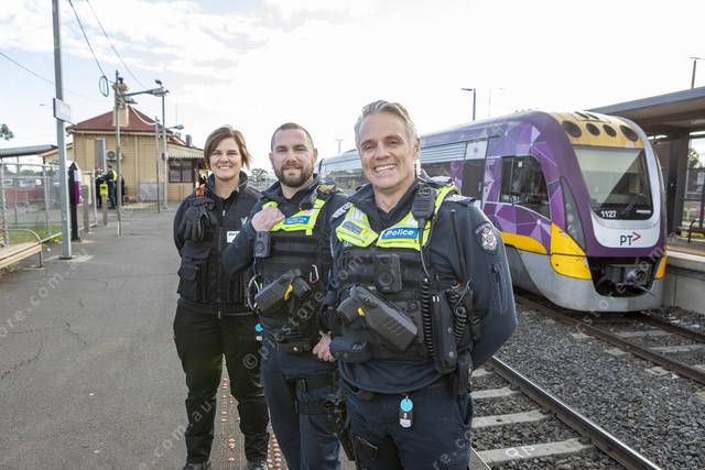 Front to back: Nathan Vipond, Matt Taliana, Melissa Castaldi (V line Authorised officer)_Ljubica Vrankovic_490067_03