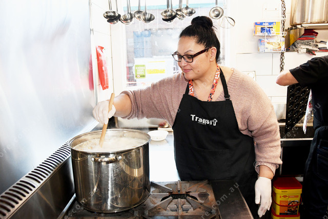 Head Chef Des stirring the broth for the chicken vegetable soup 508538_05