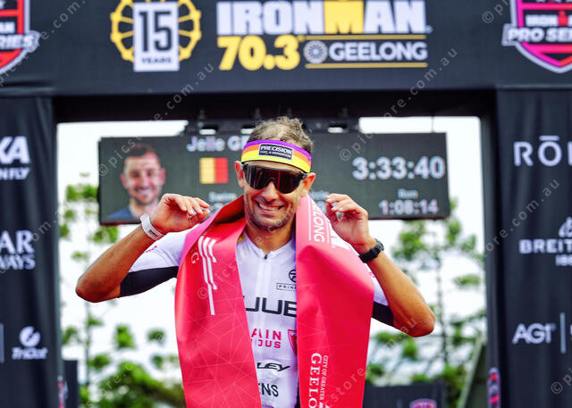 Jelle Geens winner of the men’s Ironman event, celebrates the win (Ivan Kemp) 467231_22