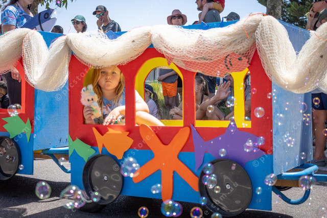 … rides in a carriage of the Flitter family’s train float. (529178_49)