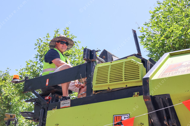 … views the Tunarama parade from a piece of West Coast Bitumen machinery. (529178_58)