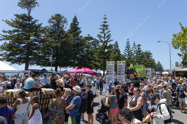 The Tunarama Parade floats make their way through the huge crowd on Tasman Terrace at the end of Bligh Street. (529178_65)