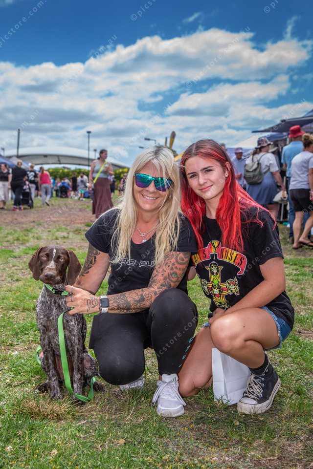 L-R Michelle Gaylard and Baileigh Gaylard with their German Short Haired Pointer called Bo.