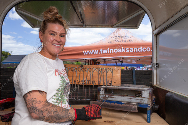Ashlee seen here is hand branding leather items they sell.