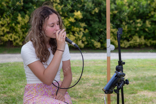Lily Georgia Music from Keysborough entertaining the market goers with songs.