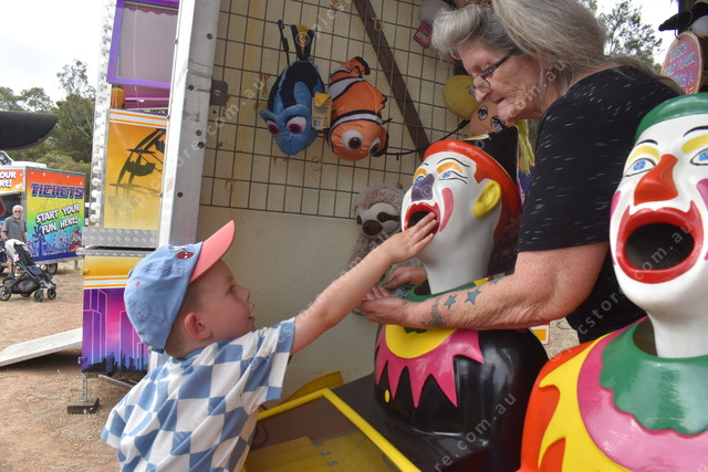 Ahren Strawbridge receives a helping hand feeding the clown. (524588)