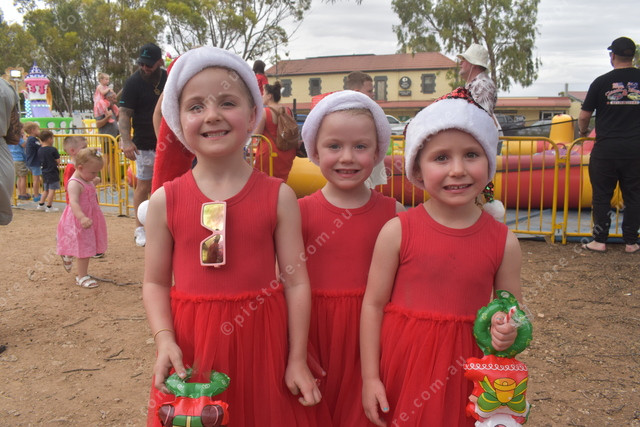 Kenadie, Harlee and Scarlett Noble dressed in the Christmas spirit. (524588)