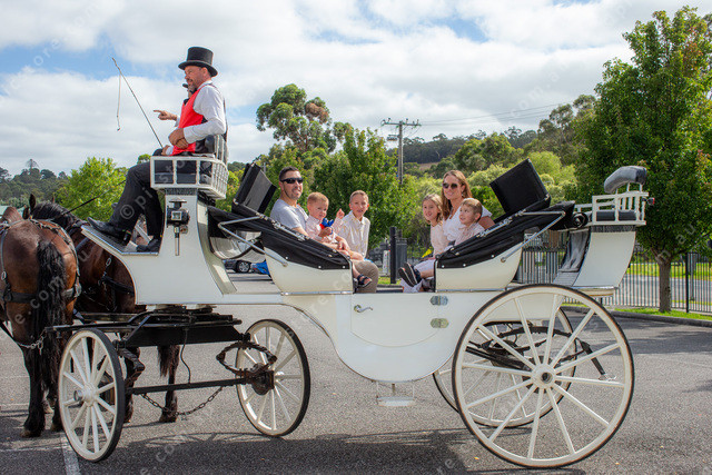 I’m pretty sure this is Melbourne Horse and Carriage (Unique Carriage Hire) from Pakenham taking the Gomez family from Pakenham.