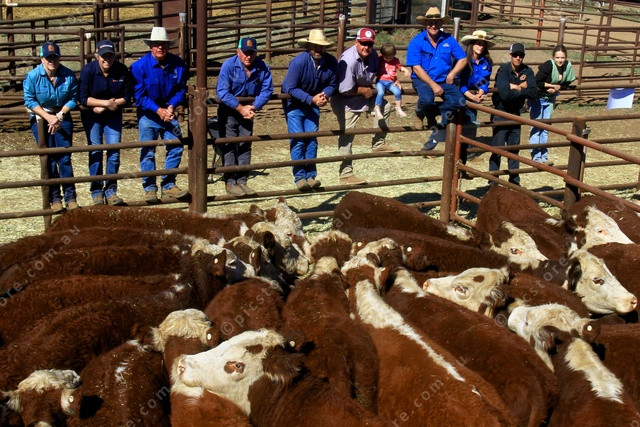 UNDOOLYA: The Undoolya Station team with a pen of cattle that reached the top dollar at the July market. (PIC: PHIL WILLIAMS 488363_03)