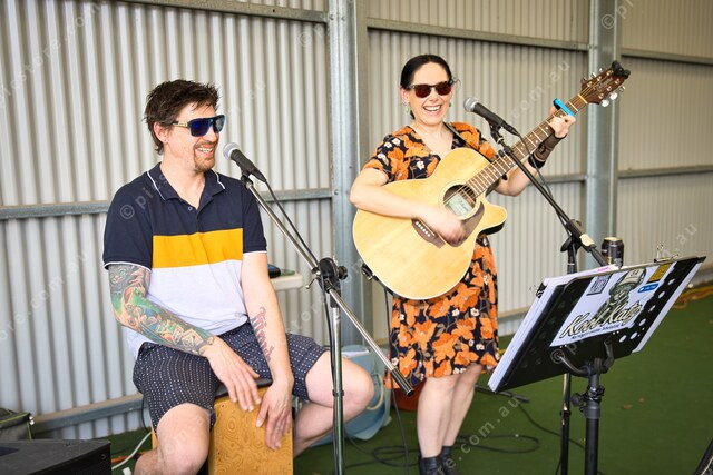 Kool Katz duo Mat Pritchard and Jorja Stone entertain the market goers. (508494_09)