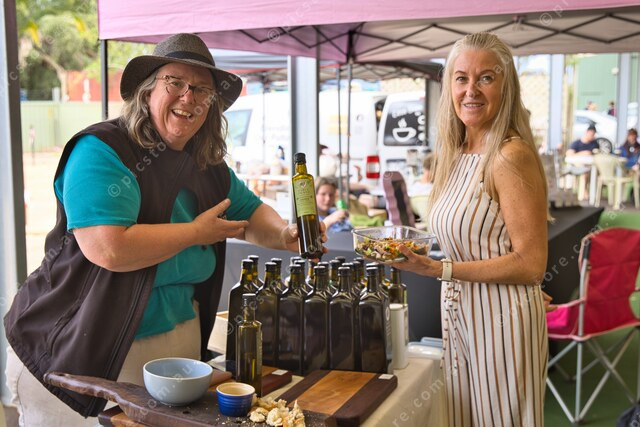 Rachel Duncan of Ante’s Olive Oil showing Kellie Whitehill her oils (508494_12)