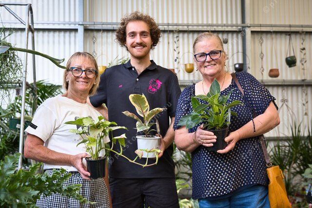 Jace Daniel and Lynn Devonport discuss plants with Ari Vadoulis. (473098_04)