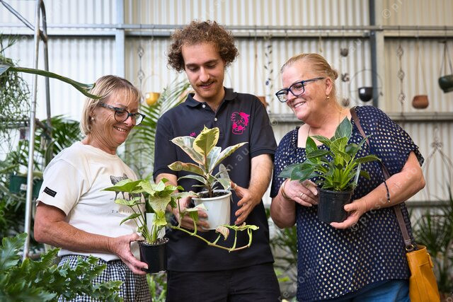 Jace Daniel and Lynn Devonport discuss plants with Ari Vadoulis. (473098_05)