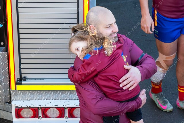 Matt Vaiano goal 106. This is the big 100. Here he gets a hug from his Daughter Laylah (6yo). I spoke to Matts Mum, she said it was ok for Laylah to be in the paper. 493634_37
