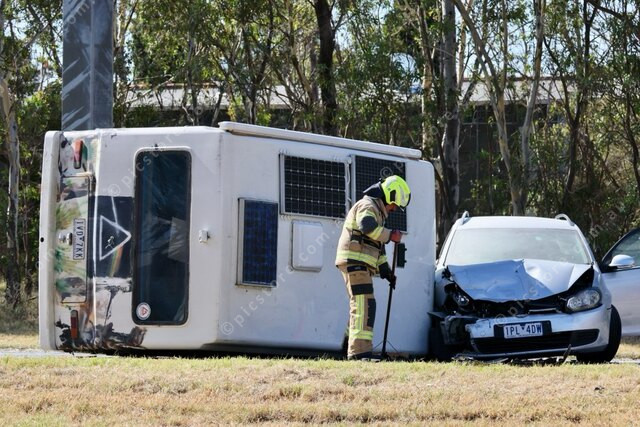 A campervan rolled over in the multi-vehicle collision on Dandenong Bypass on Thursday 30 January. (Gary Sissons: 456720)