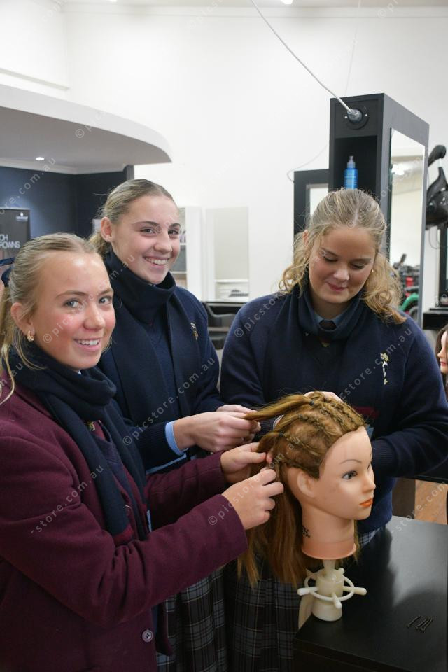 Jane Cunningham, Abbey Sevior, and Lucy Jennings all of Monivae College in the Hair and Beauty at SWTAFE.