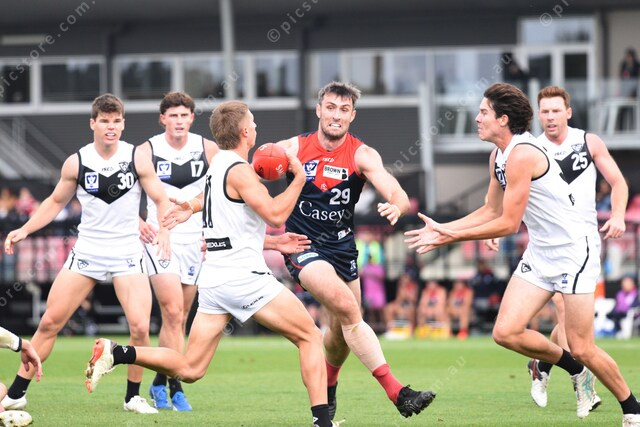 Thomas Campbell (29 Casey) eyes on the ball. Left is Southport player Will Sexton (11) with the ball. 478111_22