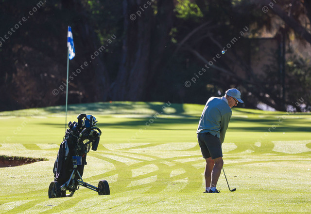 Noel Akmens looks to put his wedge close to the pin at Victor Harbor Golf Club. (Jesse Ehlers) 471986_01