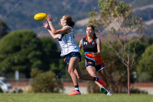 Victor Harbor High School’s Jemma Liddell takes possession in front of her Aldinga Payinthi College opponent last week. (Dani Brown: 478808_01)