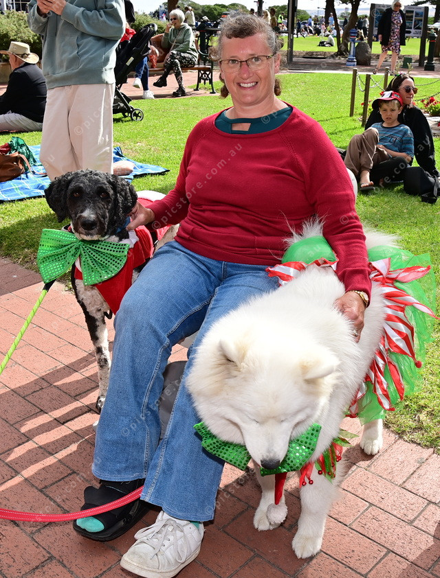 Atelia Watkins with Tux the labradoodle and April Rose the samoyed. (Mark Liebich: 524622_02)