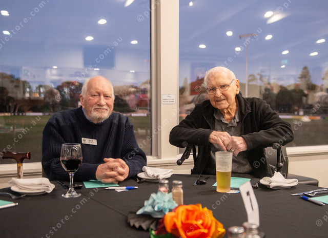 Rob Verco and Len Peake celebrated Christmas in July at the Victor Harbor RSL. (Jack Church 491376_01)