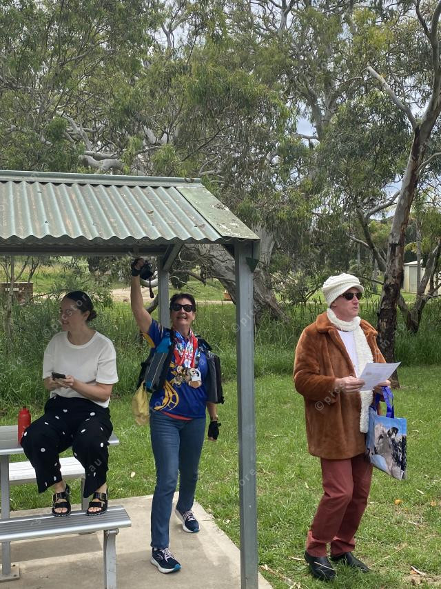 Jill Watkinson waves off some car rally competitors while Georgia Watkinson and Richard Whitebrook look for their cars. (Dee Elferink: 513365_09)