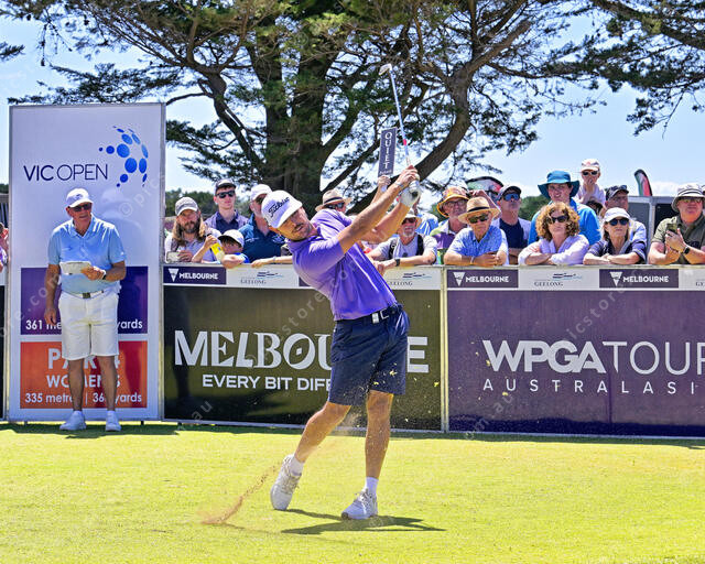 Overnight leader Nathan Barbieri tees off at the first. Unfortunately he gave up a 5 stroke lead and lost in the first hole of a playoff. (Ivan Kemp) 521169_06