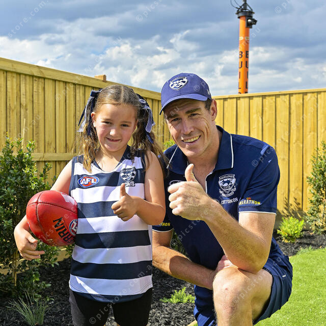 Scarlett and Jeremy Cameron give a thumbs up after some handball practice (Ivan Kemp) 465139_01