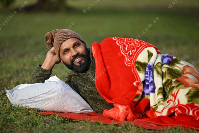 Venkat Ram Upparlapalle is raising money for Vinnies by doing the winter sleep out. Photo by Damjan Janevski. 481131_03