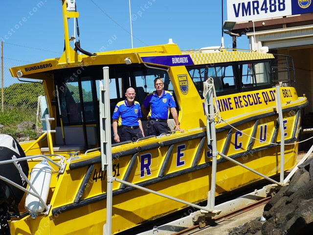 Unit Commander Rod Studholme and rescue vessel senior crewman Adam deRuiter. (Elka Scherer: 473776)