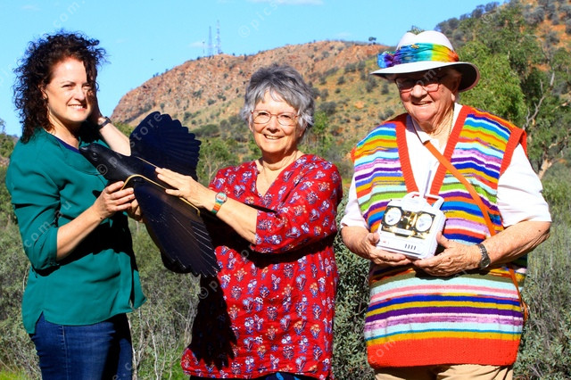 VOLLIES: Desert Park volunteers Jo Gordon, Lee Ryall and Helen Siganto with with a new drone to be used in the park. (PIC: PHIL WILLIAMS 477174_01)