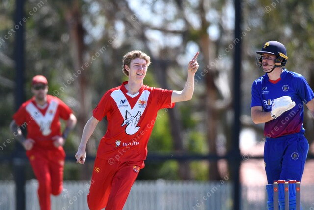 Harry Hoekstra ( Casey South Melbourne) bowled to Charlie Maxwell (Frankston, right). Maxwell is out on this bowl. 507560_14