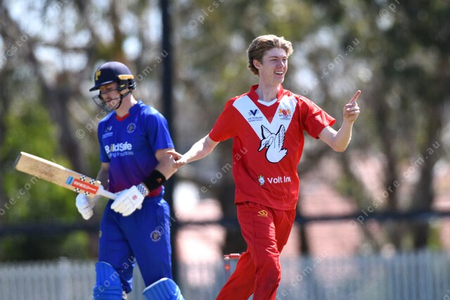 Harry Hoekstra ( Casey South Melbourne) bowled to Charlie Maxwell (Frankston, left). Maxwell is out on this bowl.507560_16