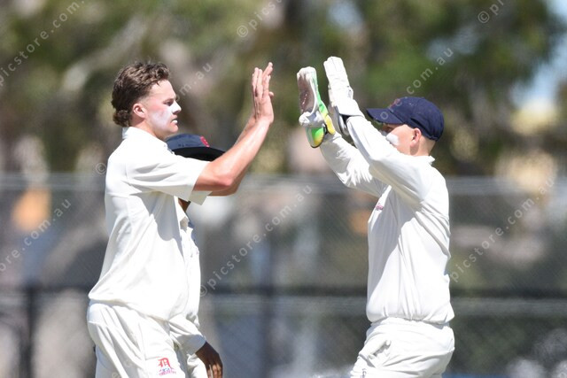 Noah Hurley (Dandenong, left) bowls, on this ball Camberwell batsman Jobe Fraser was bowled. 528966_12