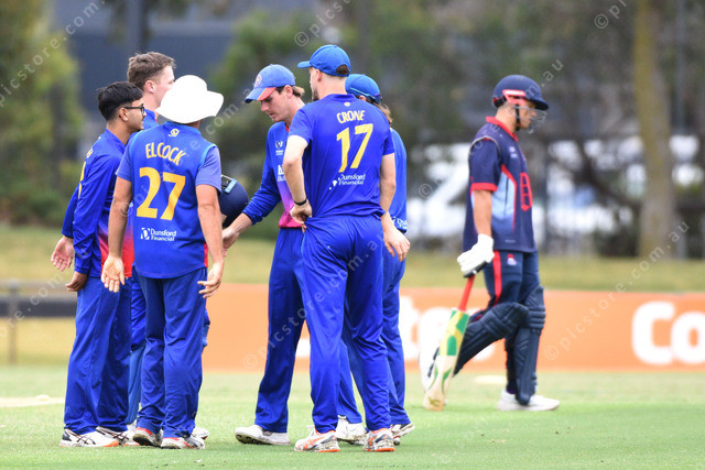 Matthew Wilson (Dandenong, right) bowled on this ball. Frankston celebrate. 525923_14