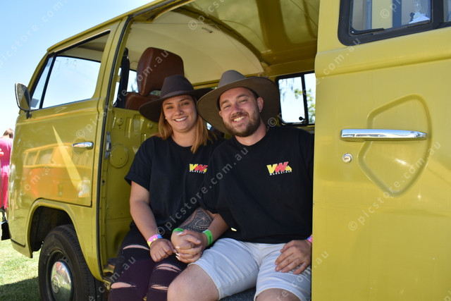 Wynnum couple Jamalia Riley and Jake Grunbauer were proud to show off their Kombi at Leslie Park. (Jeremy Cook: 508362)